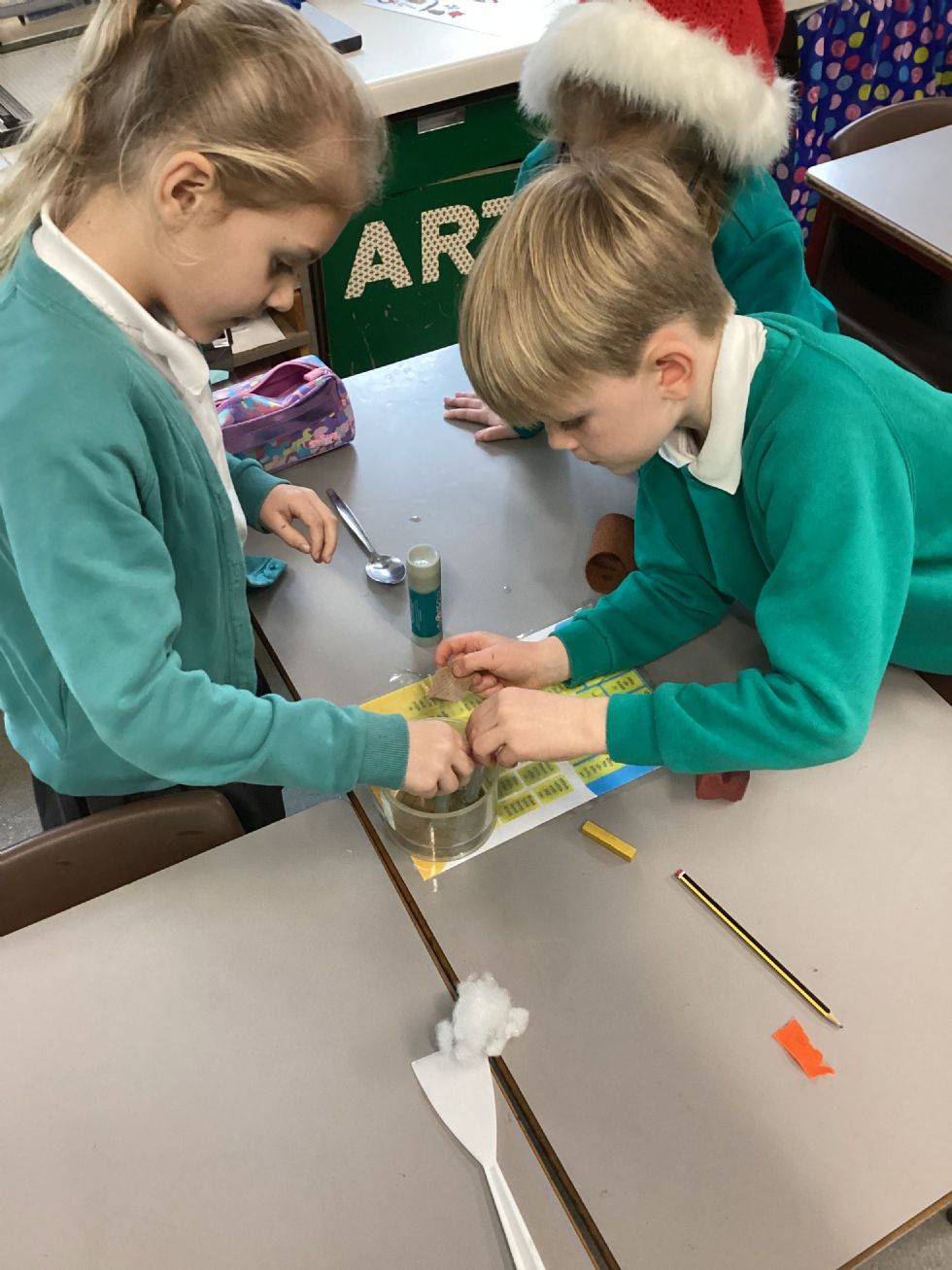 On Thursday, we had a delicious Christmas dinner, followed by some refreshing ice cream! The children all sat at long tables with one another and were able to socialise whilst eating their lunch, which was accompanied by Christmas crackers! The children enjoyed reading the jokes from these to each other! To celebrate the special occasion, the children throughout the whole school made hats that they wore during lunch! We used lots of different materials to make these and the children looked great!