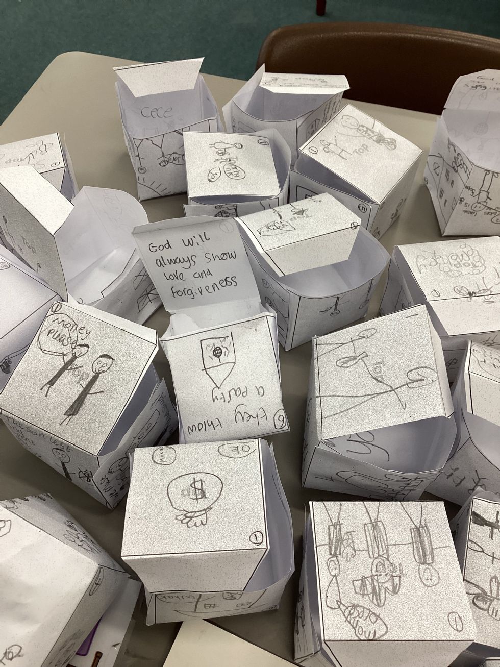 We looked at the parable The Lost Son in RE this week. We retold the story and drew it on the outside of our cubes. We then discussed what the hidden message of the parable is, as Jesus told these parables to teach Christians something. We thought the hidden message was 'God will always show love and forgiveness' so we wrote that in the inside of our cubes.