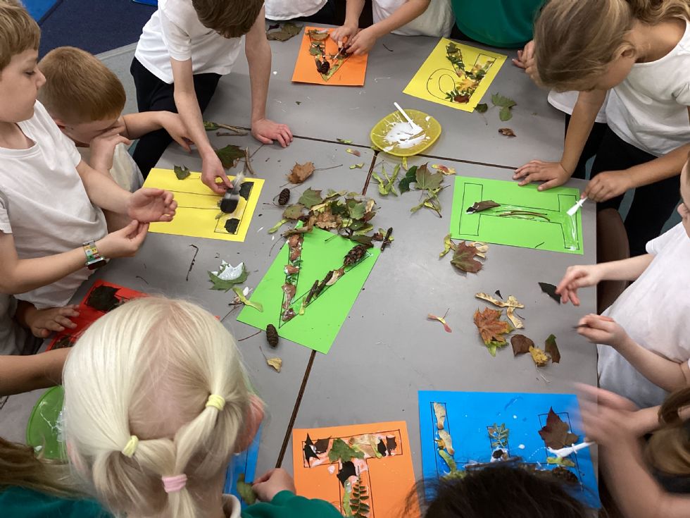 We have been busy practising our songs and poem for our Harvest Festival next week. They loved decorating their letters for their poem with things they found in nature.