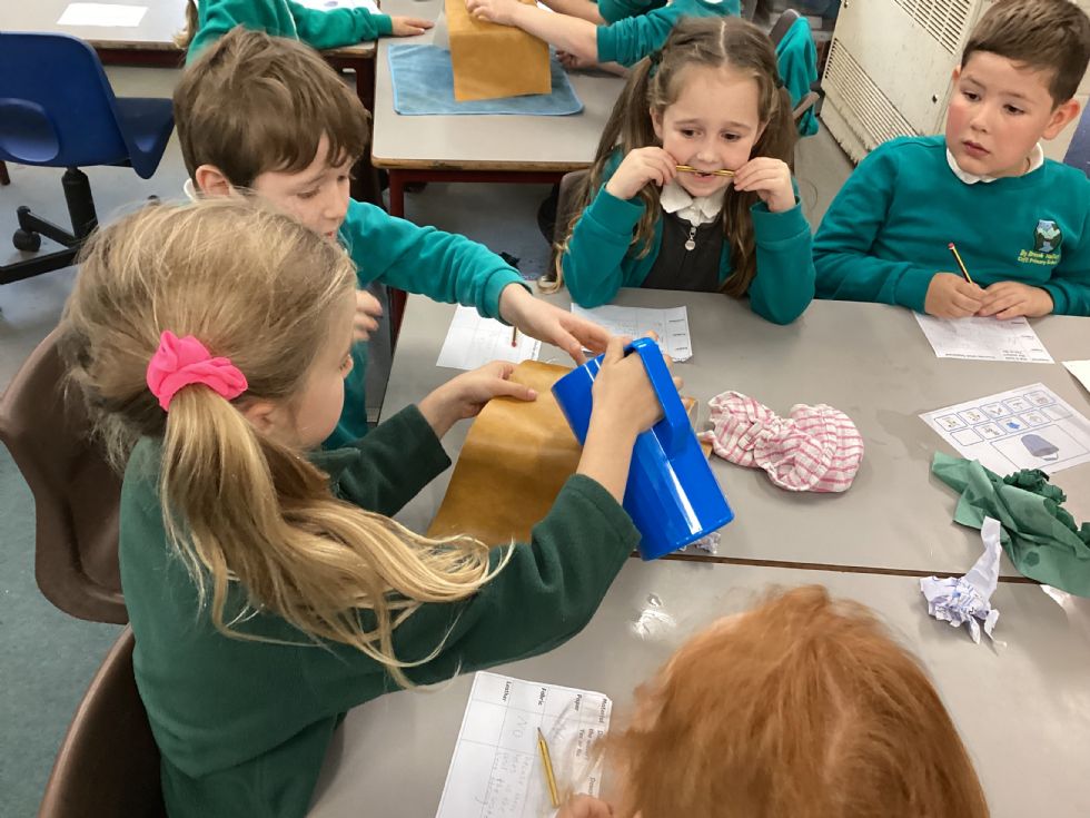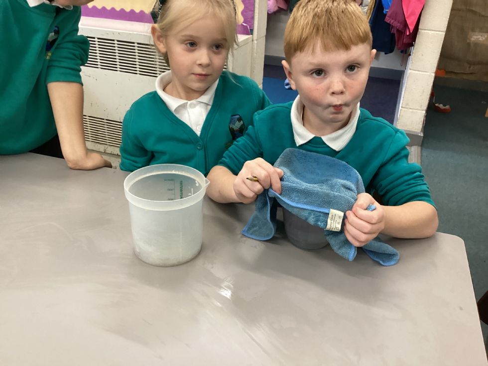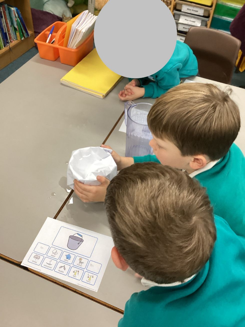The children loved our science experiment this week. We were investigating what material is best for a bucket - inspired by our Great Fire of London learning. The children tested out paper, fabric, and leather. They made predictions using their knowledge of properities of materials to help them and then created a fair test to test the materials out!