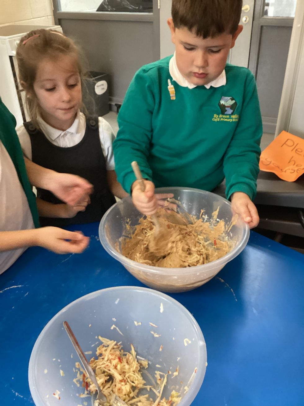 We have continued to look at instructions and featurse of instructions. We have looked at imperative verbs, time conjunctions and adverbs this week. Then we followed a recipe today to make apple cakes with the apples that grow on the school grounds!
