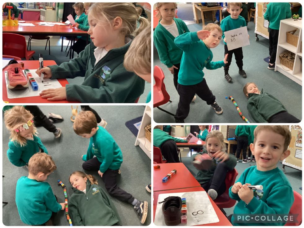 In maths we continued using our measuring skills to measure lots of different things in the classroom, including ourselves! The children used cubes as a unit of measurement and compared lengths of different items and people to find the longest and shortest.