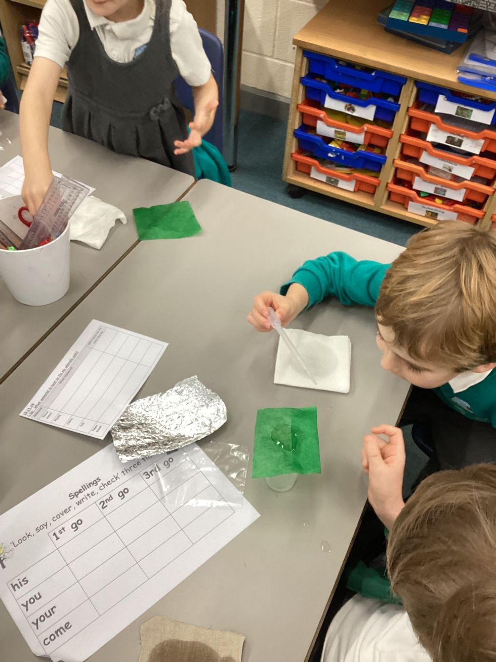 In science, falcons tested to see whether different materials were waterproof or not! They worked together in groups to do this accurately.