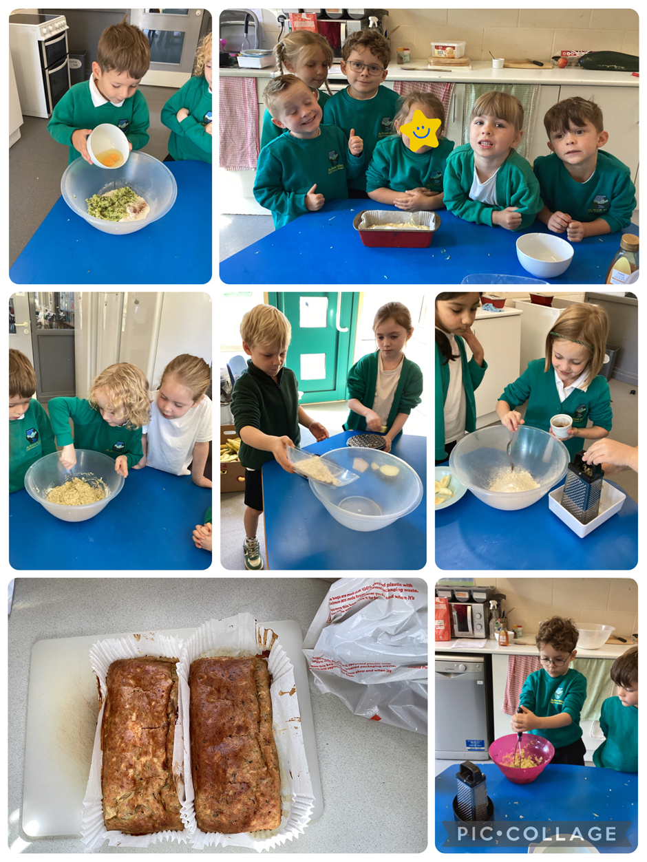 We had an amazing Marrow brought into school by Matilda! We thought it would be a good idea to incorporate this into our baking which we used apples picked from By Brooks field too! The children enjoyed grating, mixing, and pouring to create a delicious cake which we all enjoyed trying once it had baked!