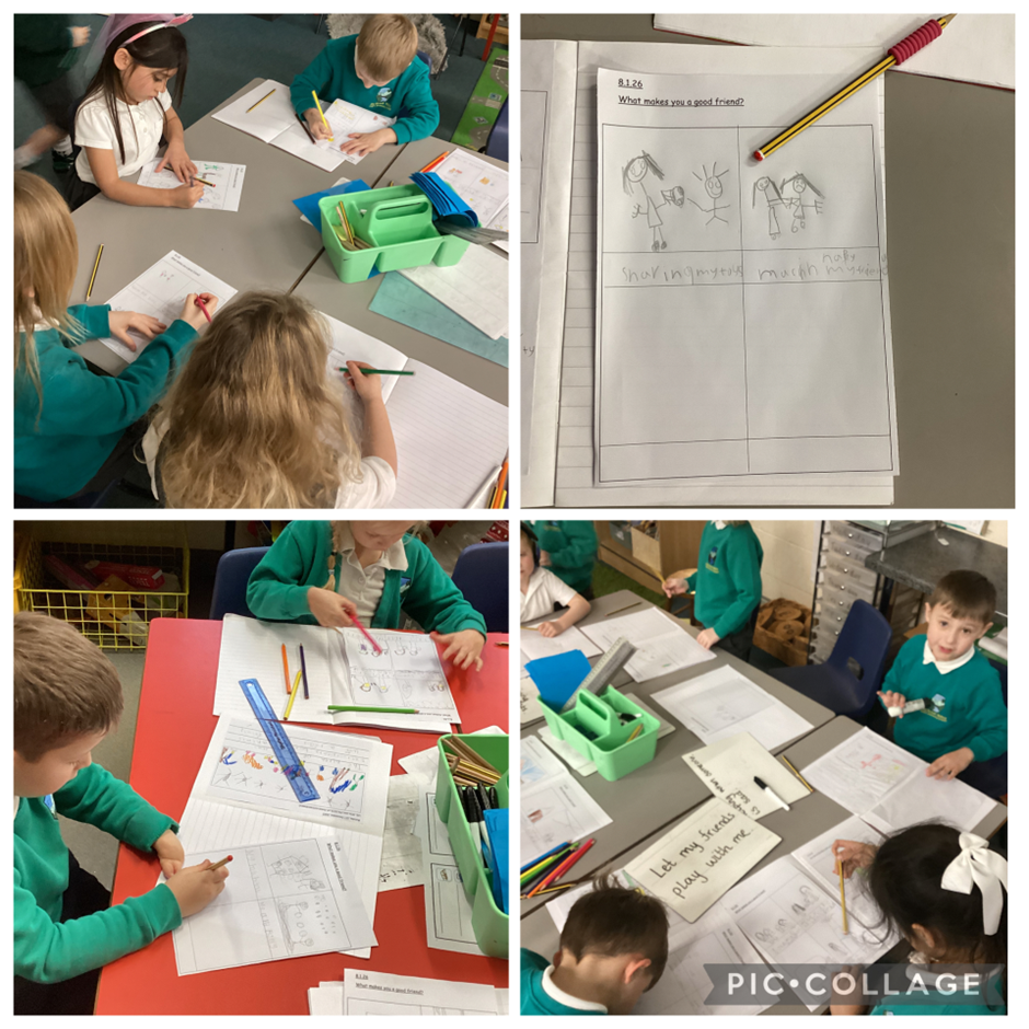 In RE, we focused our learning around friendship. We spoke about this being a Christian Value and thought about our own experiences of being a good friend.