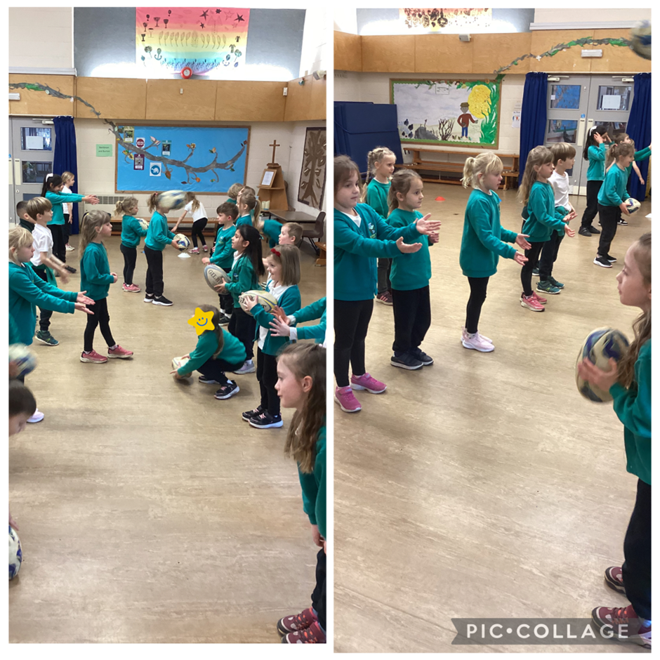 In PE we had our first tag rugby session! We practised throwing and catching a rugby ball as well as moving and placing the ball down to score a try. Yoga will start again next Tuesday!
