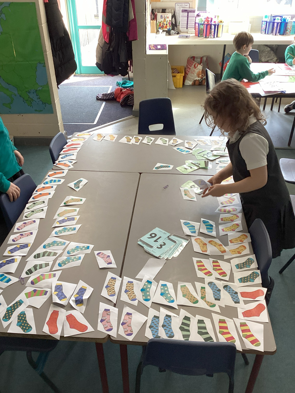 In maths, we have been learning how to count in 2s. We learnt a catchy song that helped us remember the pattern, and we had lots of fun matching up odd socks before hanging them on our washing line. We also completed different activities to help us practise counting confidently and quickly.