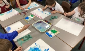 We finished our collages in art this week. We used a variety of paper to create a London Skyline on our watercoloured skies we created. The children thoroughly enjoyed collaging and they turned out amazingly!
