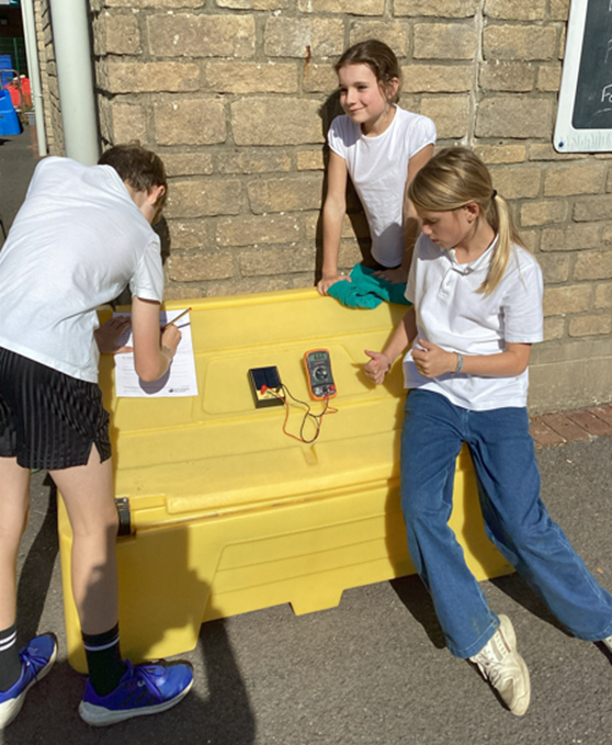 On Tuesday, we had an exciting visit to a solar farm, where we investigated the biodiversity of invertebrates and plants in the solar farm environment. Back at school, we carried out our own experiments using solar cells and multi-meters to find the best position for solar panels around our school. We then explored further by asking our own questions, such as: Can one solar cell power a motor and a buzzer? Would two solar cells increase the voltage? The children worked collaboratively and scientifically to test their ideas.